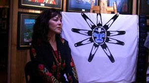 Barbara Hager films an interview during filming of a segment of The New Canoe featuring the art work of Darlene Gait as a Canadian aboriginal artist in her showroom at One Moon Gallery.